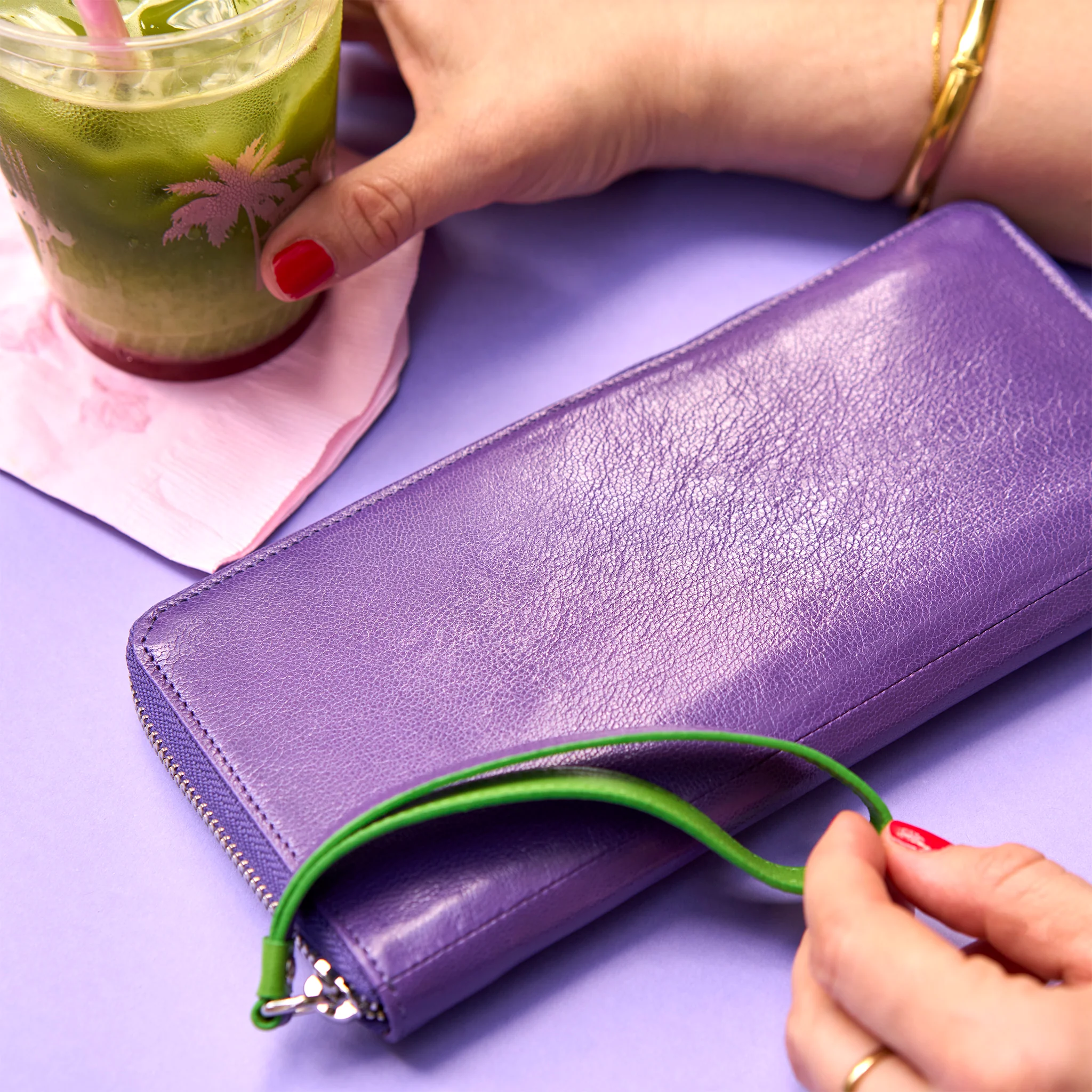 The Siam Zip Travel Portfolio is the perfect travel accessory. Utilize the wristlet zipper pull strap for added security while keeping your boarding passes within reach in the outside slit pocket. Complete with inside zip pockets to secure currency or documents, length-wise open pockets, a gusseted pocket for your passport, and 4 credit card slots, this silhouette provides essential organization while traveling. As an added bonus it can hold two passports.